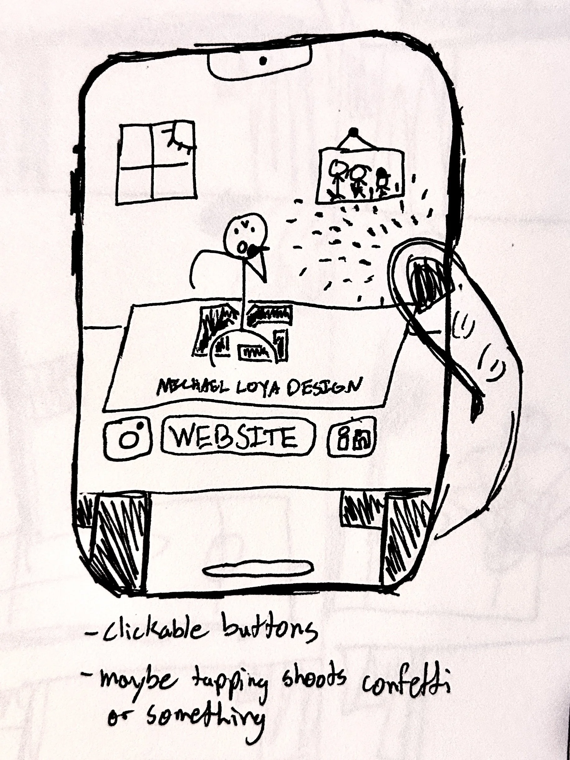 I began the ideation process by considering my two biggest hobbies—sports and music—and brainstorming ways to integrate them into an interactive AR experience. My first concept revolved around basketball, where my business card would serve as the court, and my avatar would dunk on a hoop that emerged from the ground. While this idea was exciting, I quickly realized the technical limitations of 8th Wall would make execution difficult, leading to long load times and a clunky user experience. Wanting something more seamless, I shifted my focus to music. Producing music has been a creative outlet for me, and incorporating it into the project felt like the perfect way to showcase not only my design skills but also my range as a creator. This direction allowed me to craft a business card that felt more personal, dynamic, and engaging.